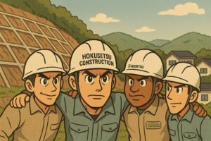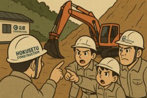 北摂constructionでは、法面工事に携わる一人ひとりが「自分が現場の安全を守る」という意識を持てる環境づくりを大切にしています。