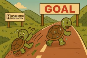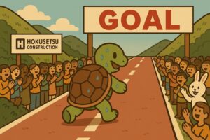 けれど、本当に価値ある成果は、かめのように“歩みを止めない者”に宿ります。信頼、信用、仲間、技術。